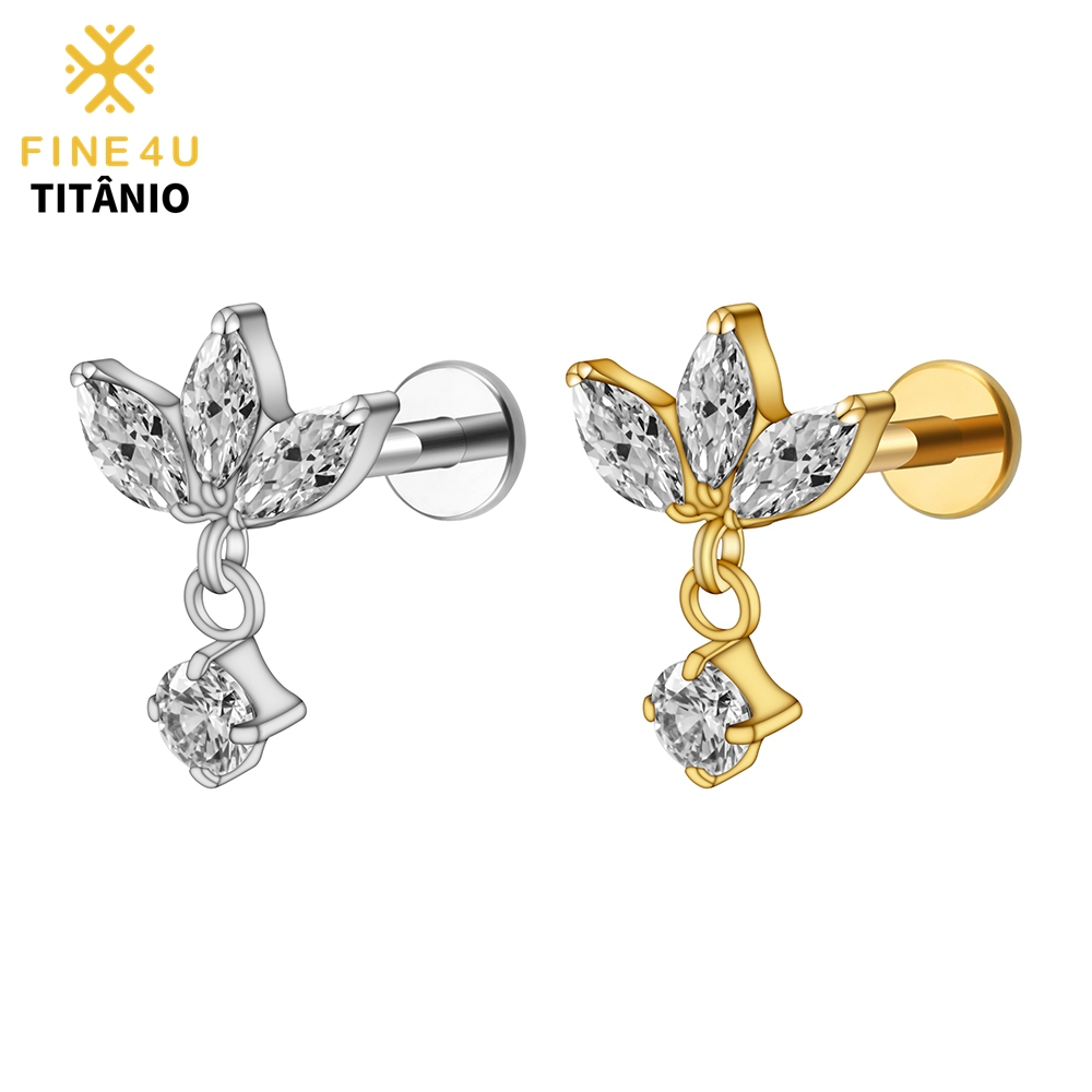 FINE4U Piercing Flor Zircônia Com Pingente Original Titânio Para Helix Conch Septril Rook Daith Tragus Cartilagem Piercing Orelha