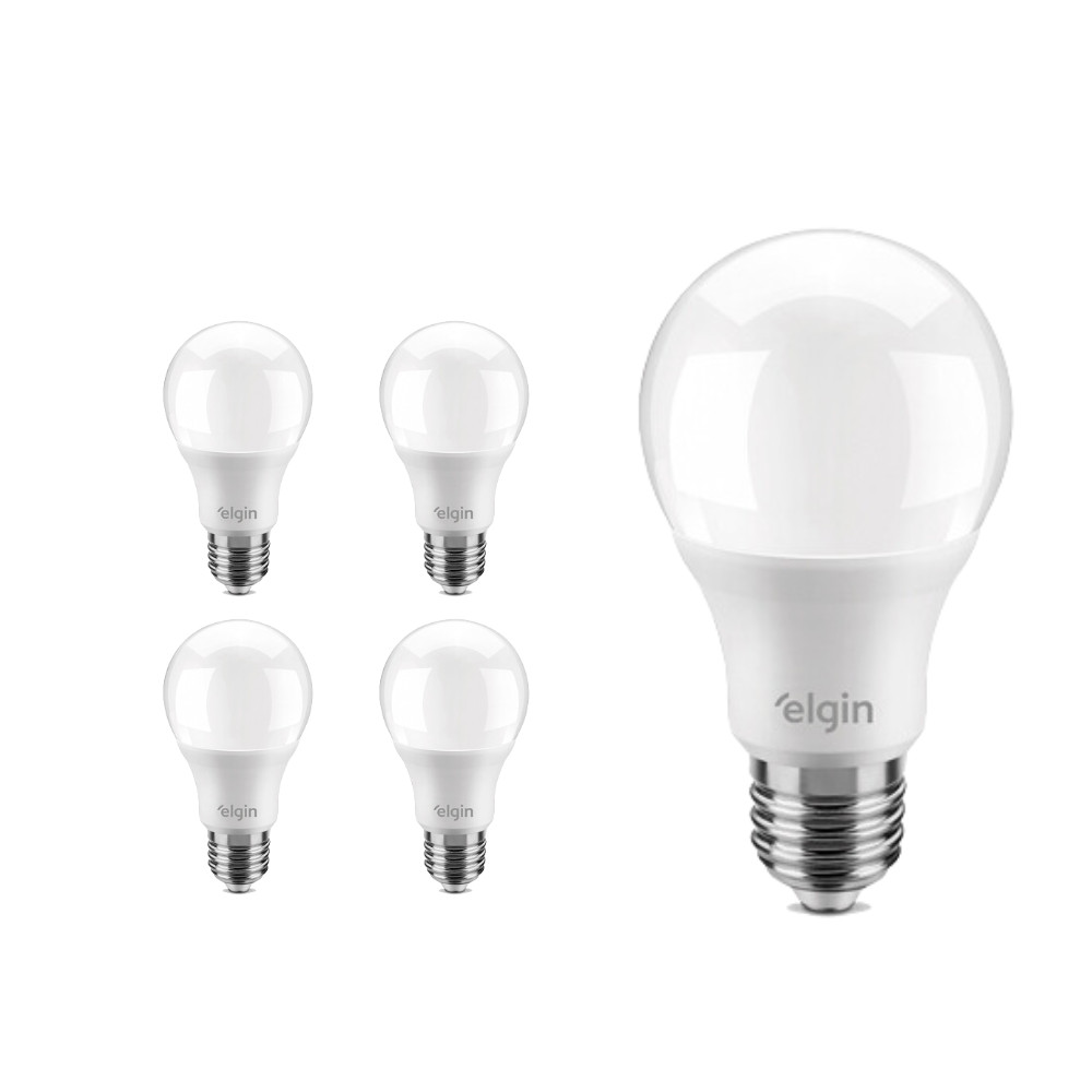 Kit com 5 Lâmpadas Bulbo Led 15W Bivolt 6500K Elgin