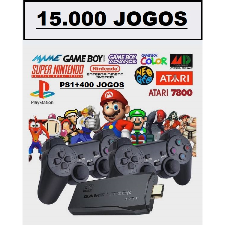 Video Game Stick 4k 15mil Jogos Retro Com 400 jogos de PSX + 2 Controles Sem Fio Console Portatil Jogos Retro Antigo Original