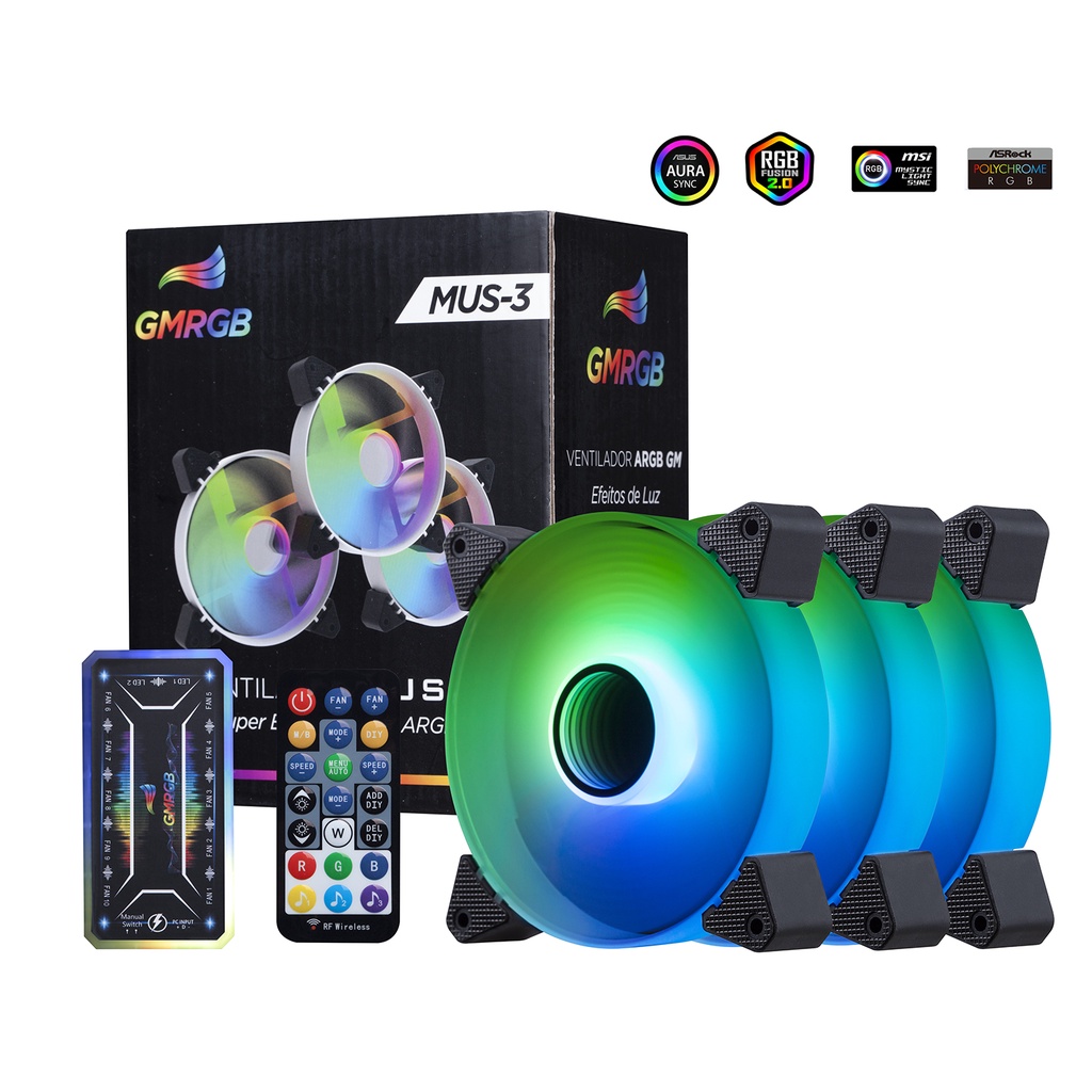 kit 2/3/4/5/6/7/8 GMRGB Cooler Fan Led RGB 120mm 12cm Gabinete Pc Gamer Ventoinha + Controladora