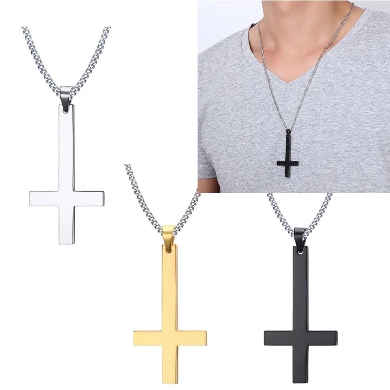 1 Pc Delicado De Aço Inoxidável Upside Down Cruz Colar Para Homens Invertido Pingente Com Corrente De Moda Jóias