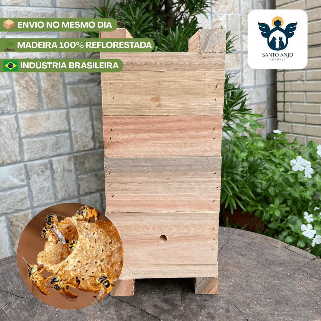 Caixa Para Abelhas Sem Ferrão Jatai + Suporte De Parede