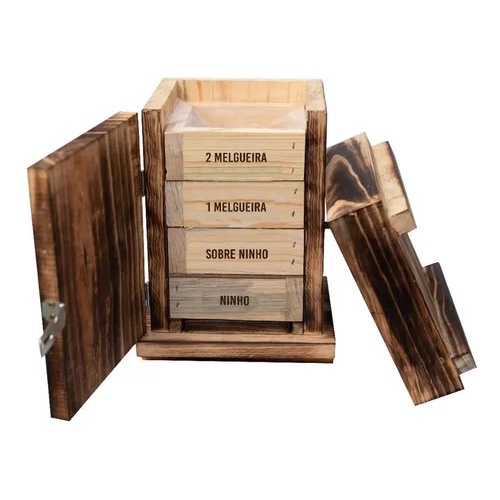 Caixa para Abelhas Sem Ferrão modelo INPA 10x10x2 Jataí Mirim Em Eucalipto