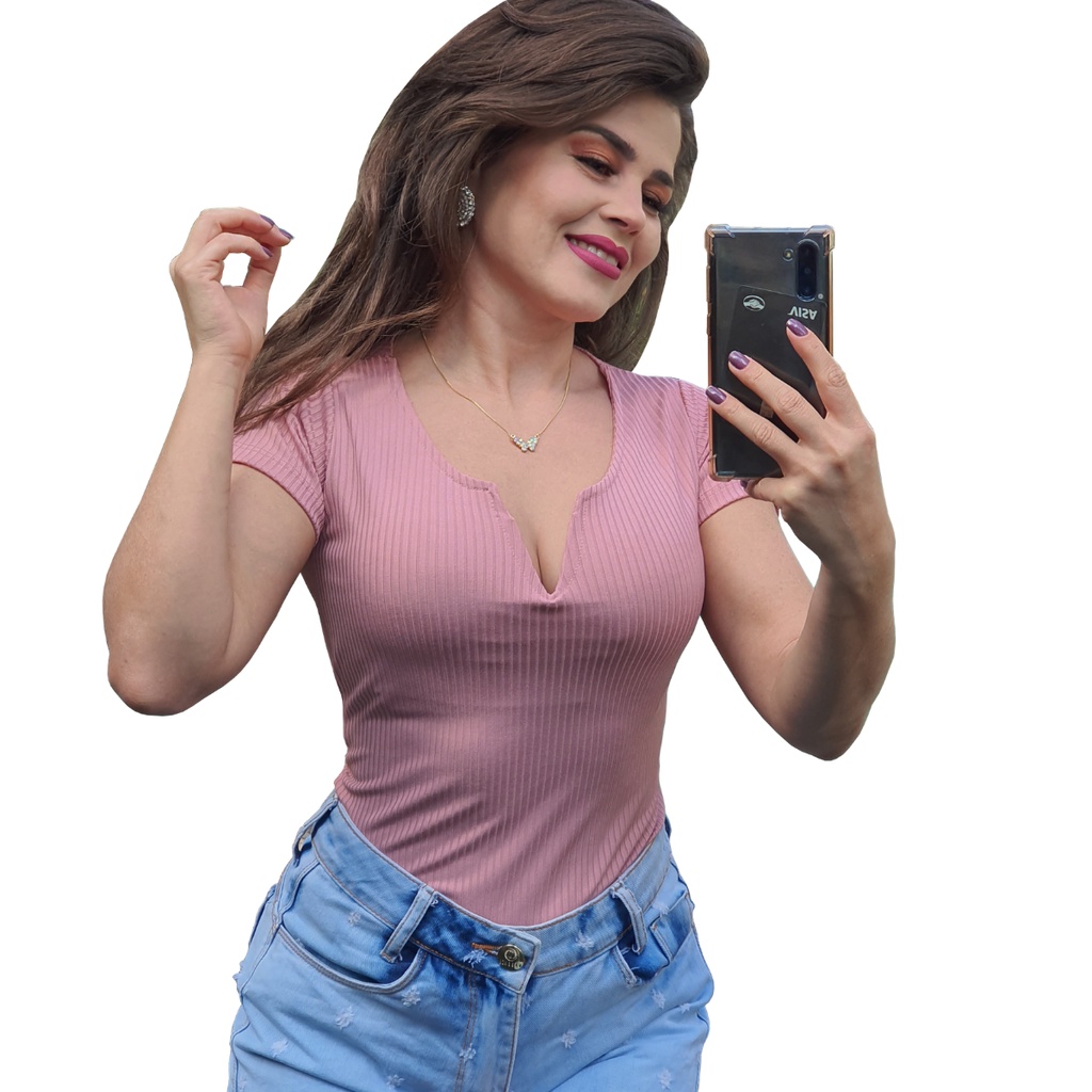 Blusinha basica feminina gola v malha canelada t-shirt baby look lindas cores e modelos promoção