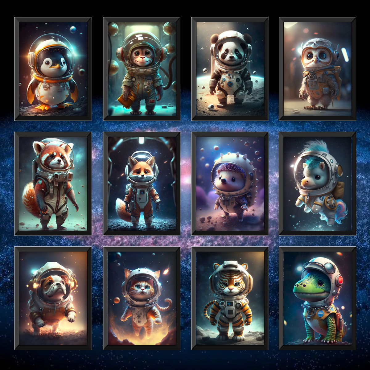 1 Peça A5 Tamanho Arte Moderna Design Fantasia Estilo Fantasia Pequeno Animal Astronauta Pôster Sem Moldura Decoração Sala de Estar Decoração Quarto Pintura Decoração Quarto