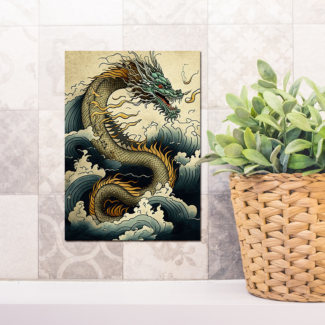 1 Peça A3 /A4 /A5 Tamanho Retro Art Design Ilustração Estilo Dragão na Parede da Onda Gigante Adesivo Sem Moldura Melhor Presente Pôster de Decoração de Sala de Estar