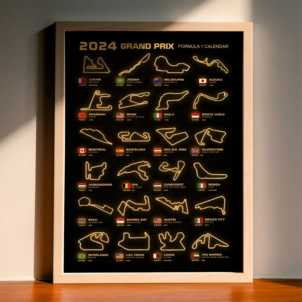 1 Peça A3 /A4 /A5 Tamanho Arte Moderna Design Neon Style 2024 F1 Race Wall Stickers Sem Moldura Melhor Presente Pôster de Decoração de Sala de Estar