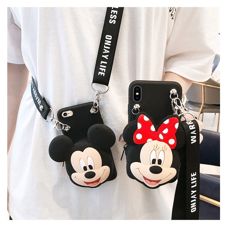 Carteira Desenho Animado Telefone Para iPhone 7 8 Plus 13 12 11 Pro Max XR XS 6S 6 3D Fofo Minnie Zíper Capa Flexível De TPU