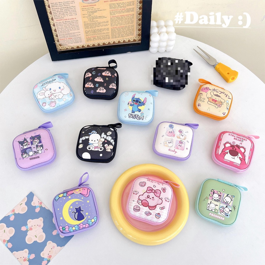 Tamanho 7,5cm * 7,5cm Bonito Desenho Animado Disney Stitch Lotso Honey Bear Pattern Saco De Armazenamento Para Fone De Ouvido Caixa Cabo USB Tampa Da Bolsa Com Zíper