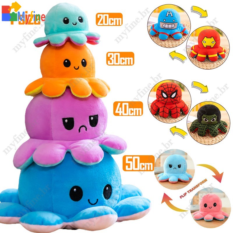 50cm Grande Reversível Polvo do Humor Bonecos Brinquedos de Pelúcia