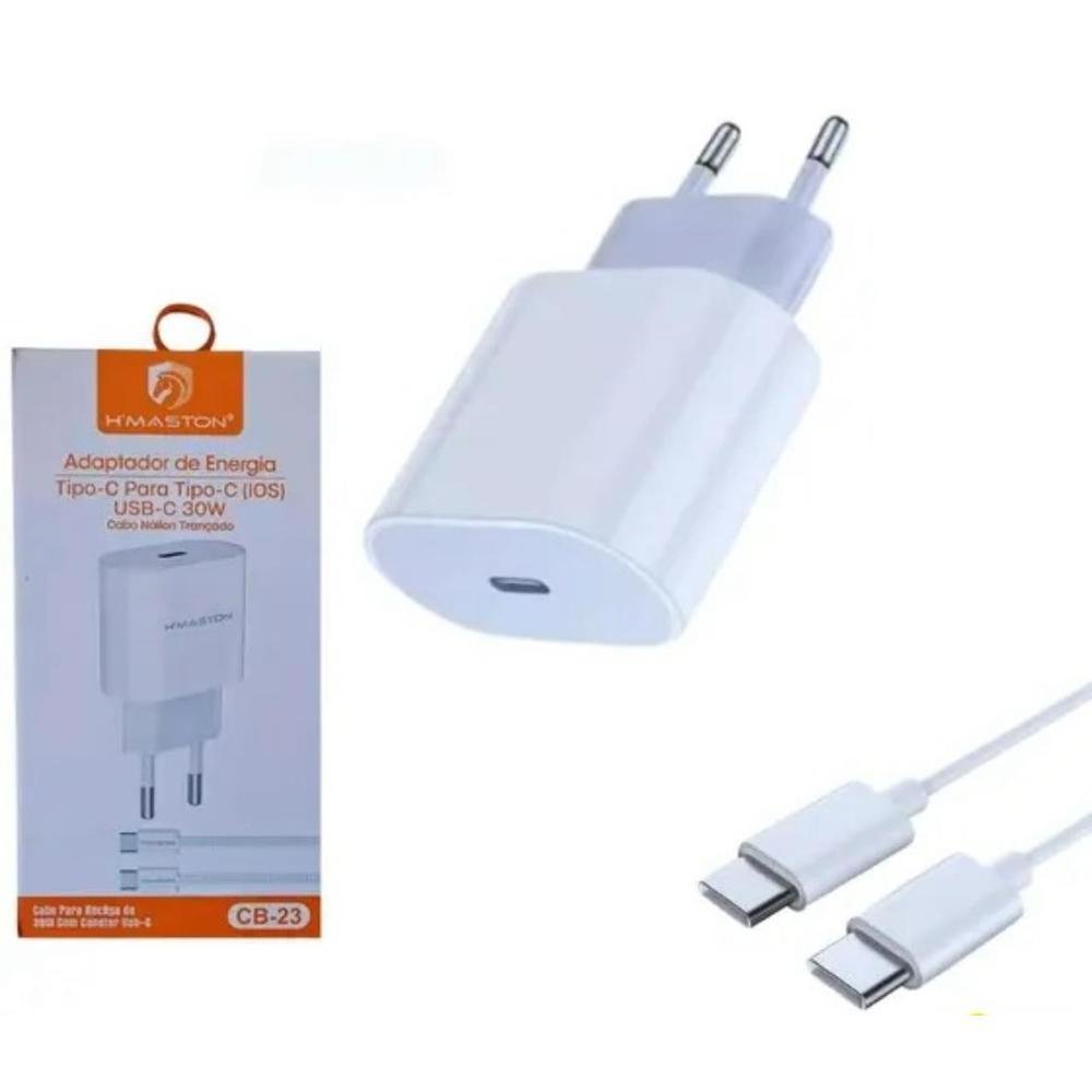 Carregador Fonte Para Iphone 15 Tipo C 30w Carregamento Rápido + Cabo Tipo-c Nylon H'maston Cb-23