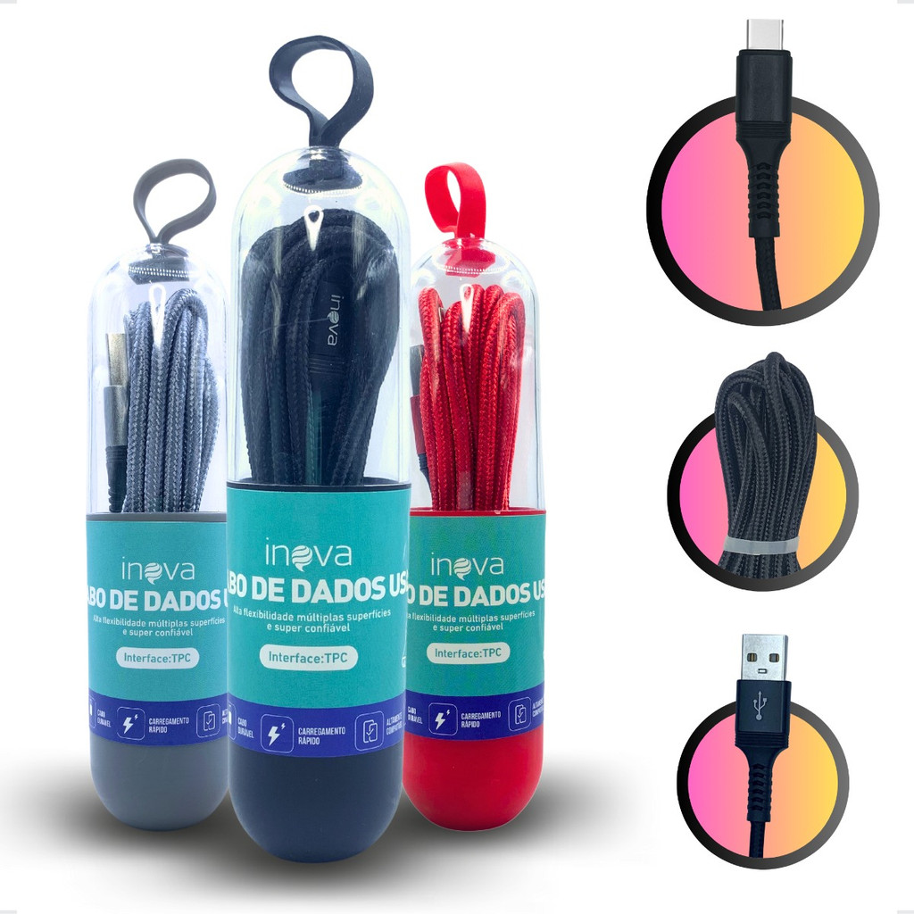 Carregador Cabo Tipo C Carga Rápida Turbo 2 Metros Grande Reforçado Carregamento Rápido Cabos 3.4 A Android Novo