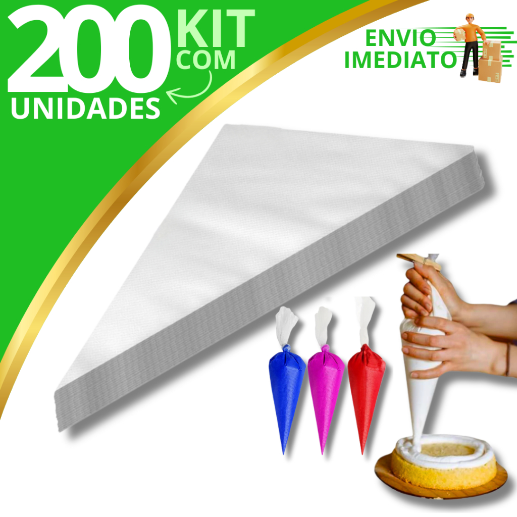Kit Saco De Confeitar Médio 200 Unidades Para Confeitaria Bolo Doce Cupcake