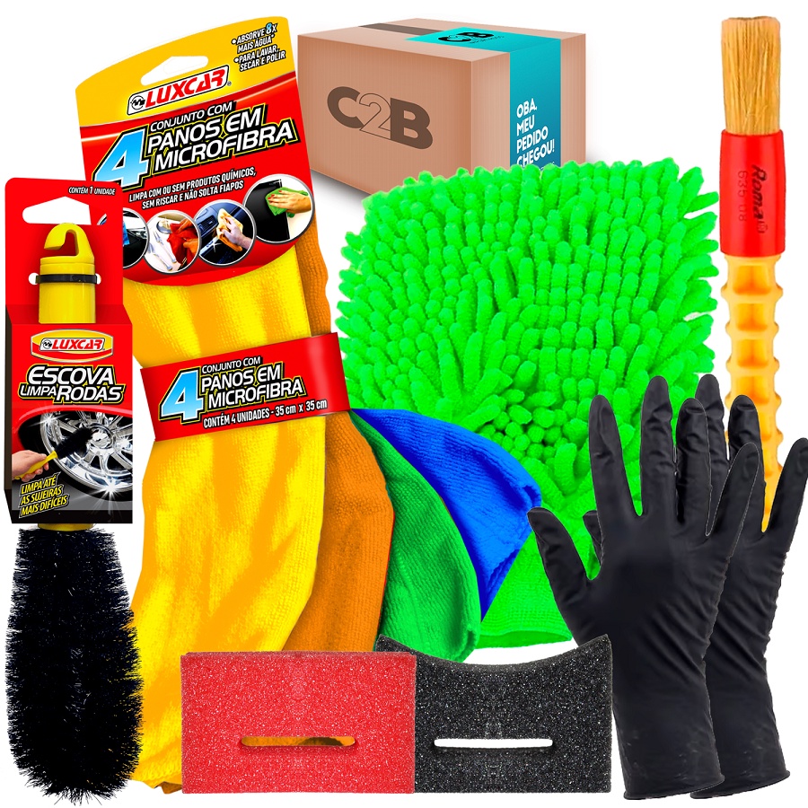 Kit acessório limpeza lavagem automotiva carro e moto pano luva microfibra escova esponja Pincel detalhamento