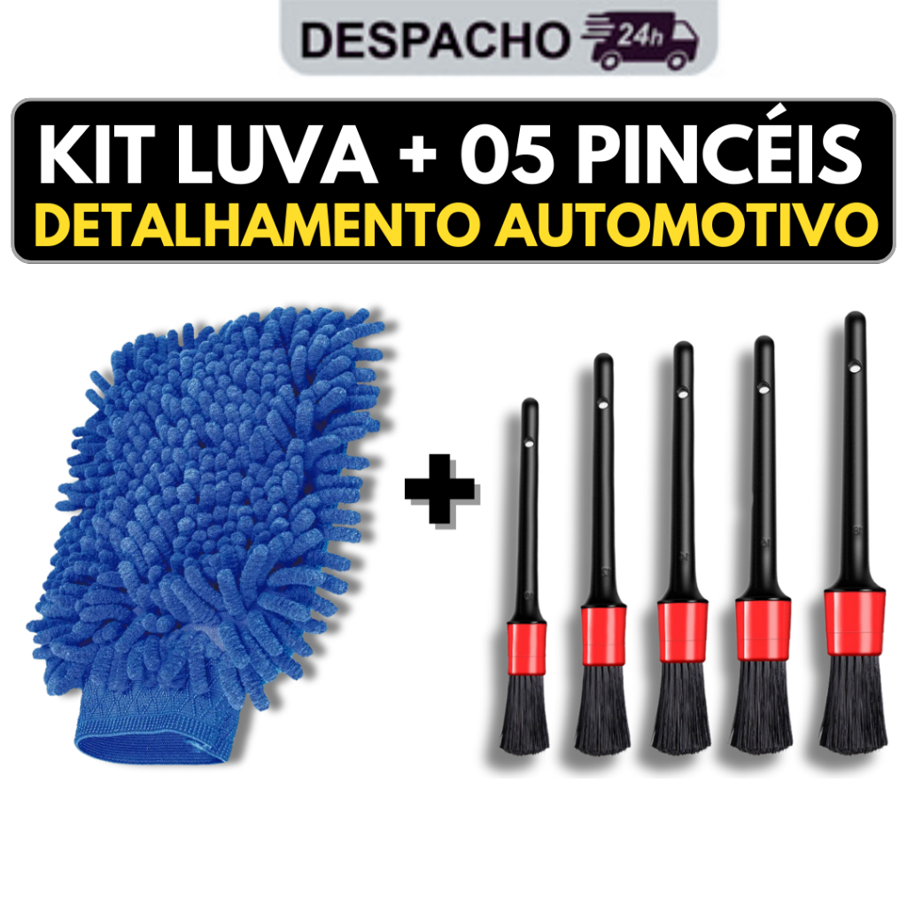 Kit Luva de Microfibra + 05 Pincel Detalhamento Automotivo Limpeza