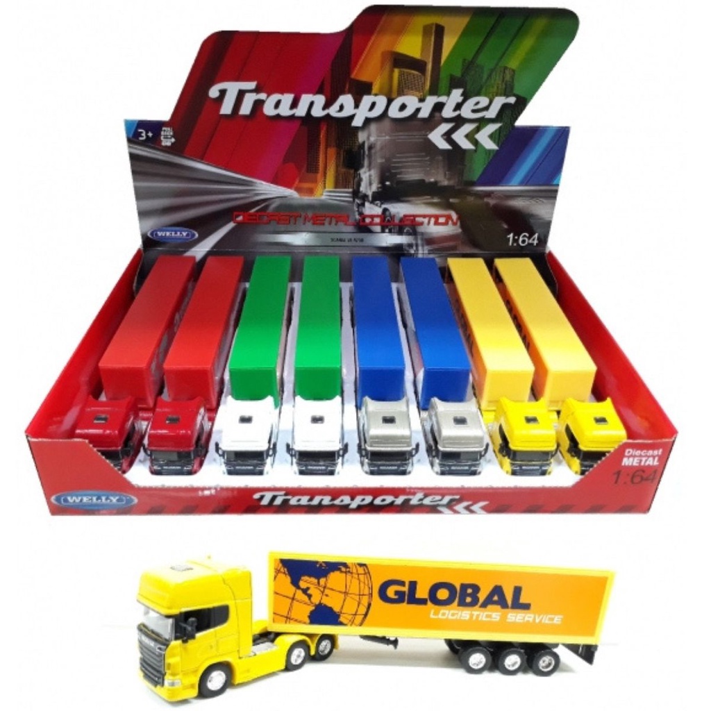 Miniatura Caminhão de Coleção Scania V8 R730 Trucado Truck com Baú Container Escala 1/64 Welly