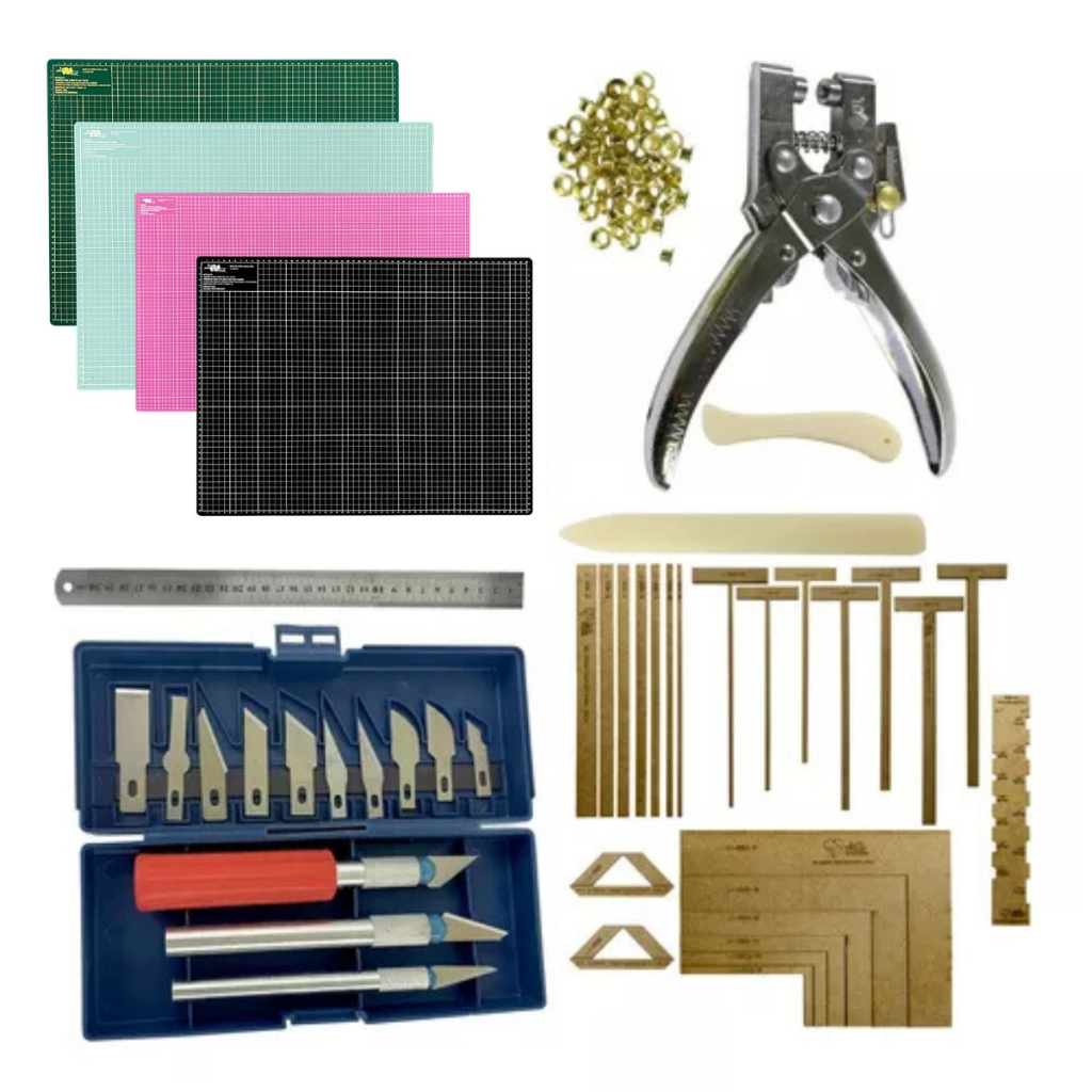 Base Mesa Apoio Corte A3 30x45 Kit Scrapbook Cartonagem Gabarito Alicate Ilhos Estiletes Régua 30cm Dobradeira Vincadore