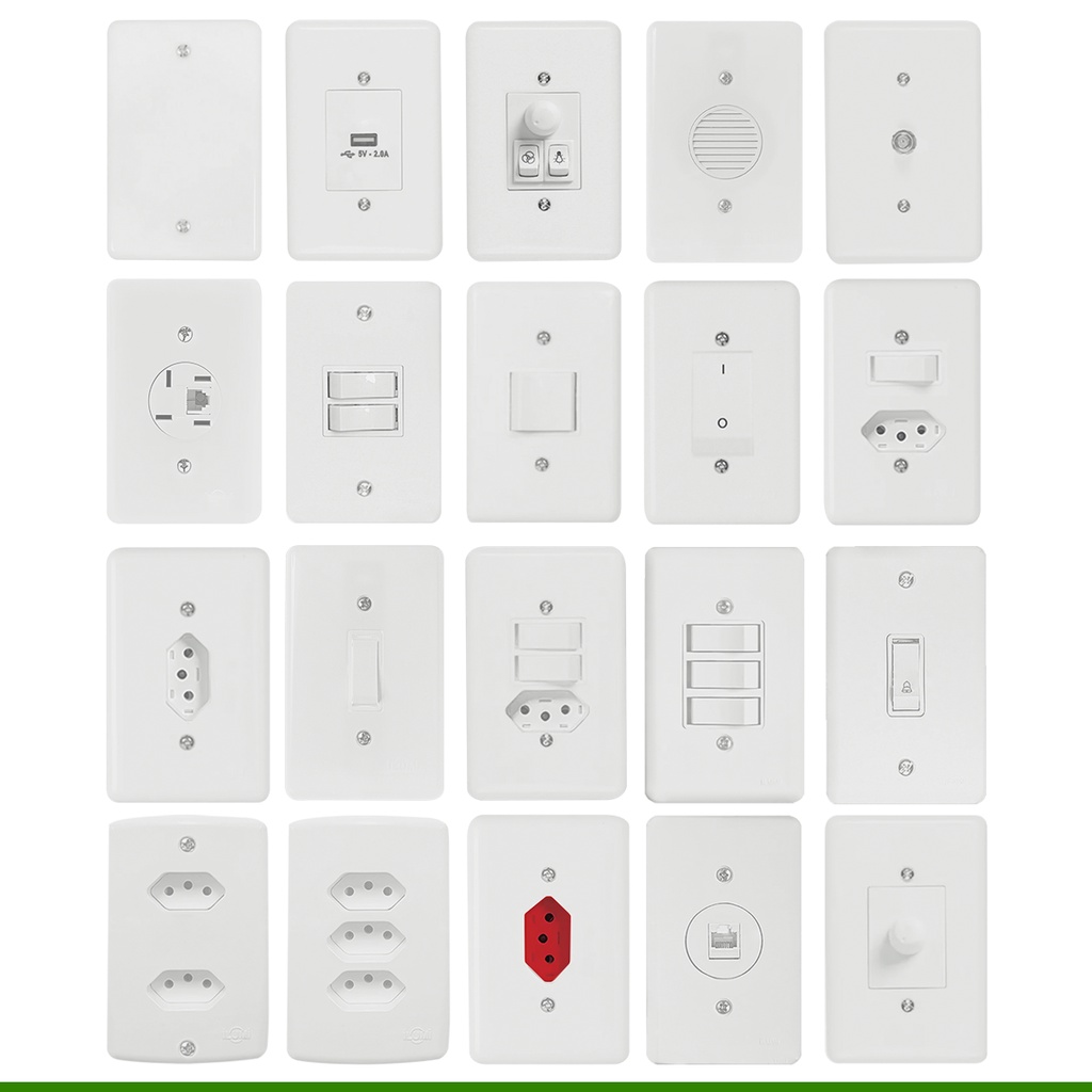 Tomadas e Interruptores 10A/20A Placa 4x2 e 4x4 Campainha Modelo Pratika Ilumi 110v e 220v