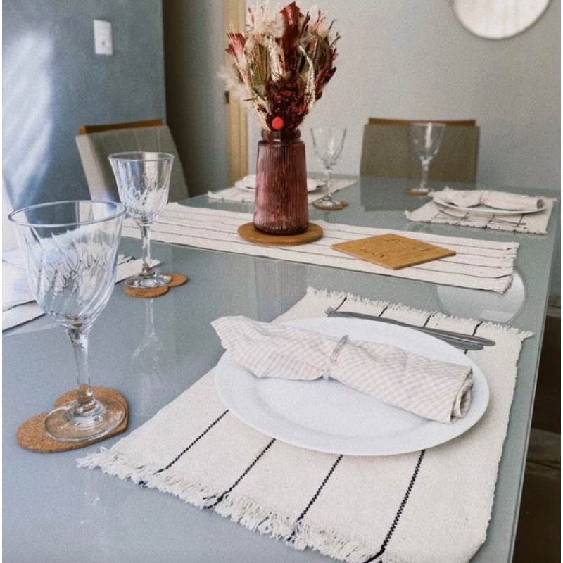 Jogo Americano de mesa 6 peças e 1 caminho de mesa Algodão feito em tear manual souplast jantar