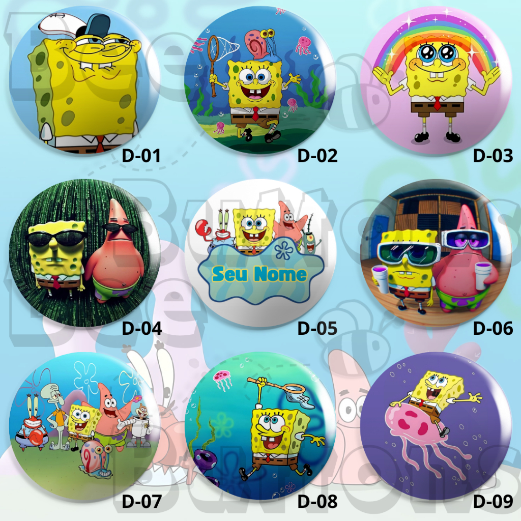 Bottons BOB ESPONJA - Boton / Button / Botum / Broche / Pin - 3,8cm e 5,5cm.