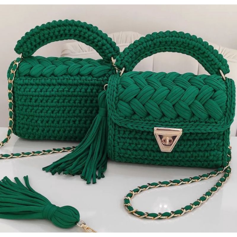 Bolsa de Ombro em Crochê Fios de Malha cor Verde Bandeira - Edição de Luxo