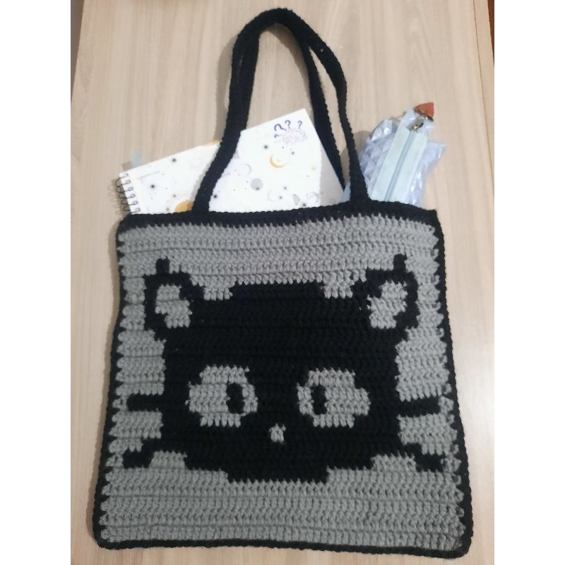 Bolsa chococat de Crochê Grande de Ombro/Bolsa saco em Crochê de Gatinho