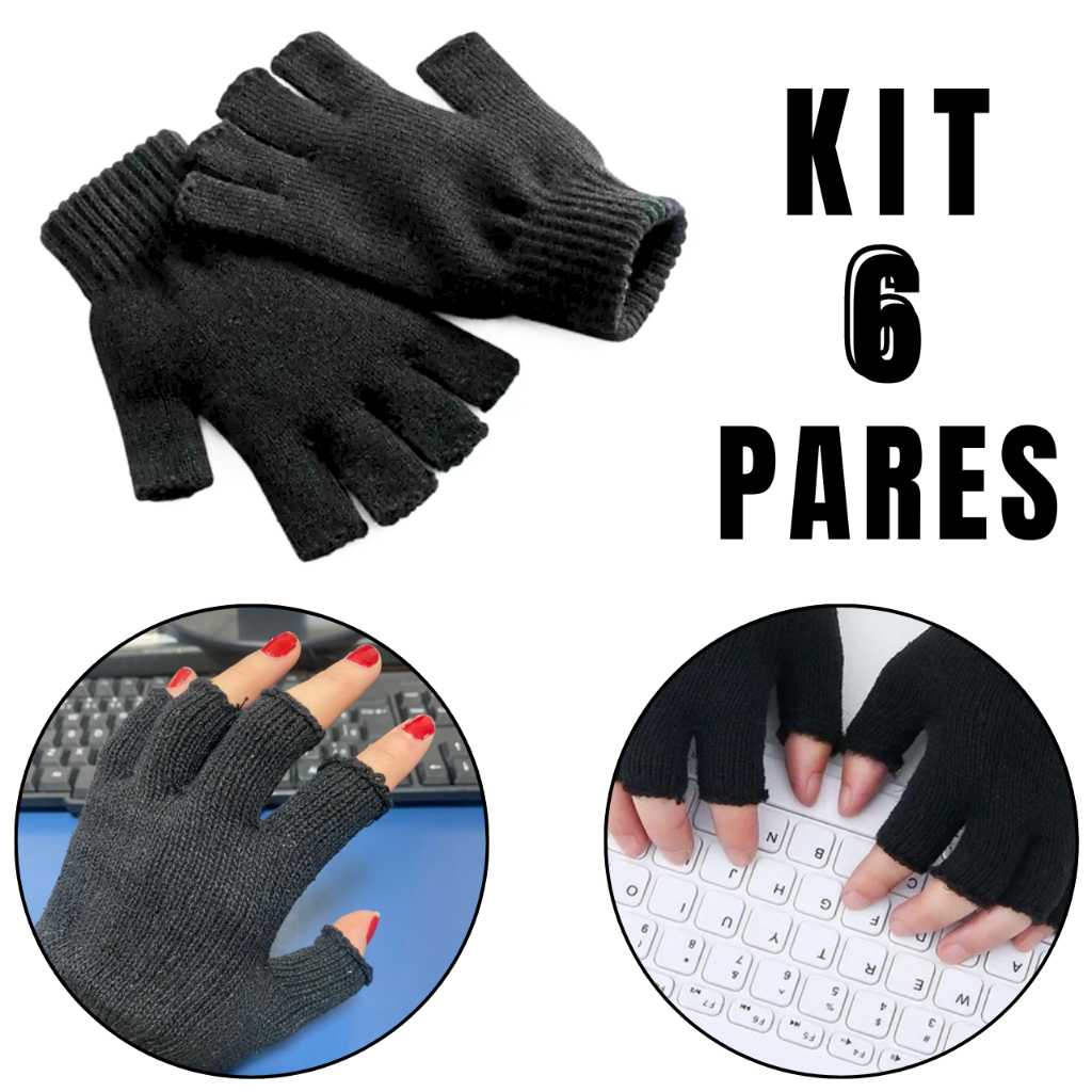 Kit 6 Par de Luva Sem Dedo De Lã Básico/Antiderrapante Inverno Frio