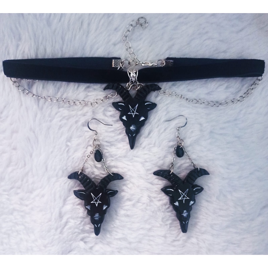 Choker ou par de brincos bode Baphomet gótico dark alternativo aço inoxidável