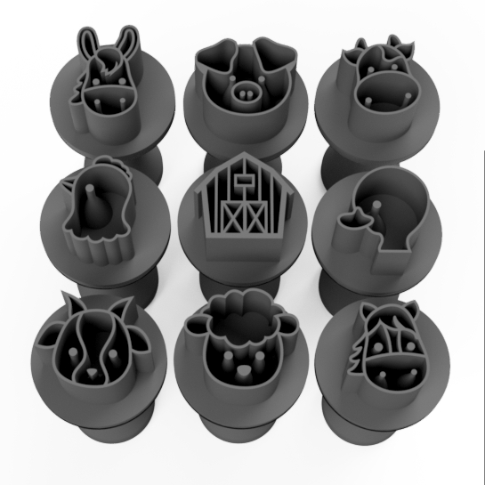 Carimbo Para Brigadeiro Marcador de Docinho Unidade Fazendinha - Vaca, Galinha, Porco, Pato, Bode, Burro, Cavalo, Ovelha e Celeiro