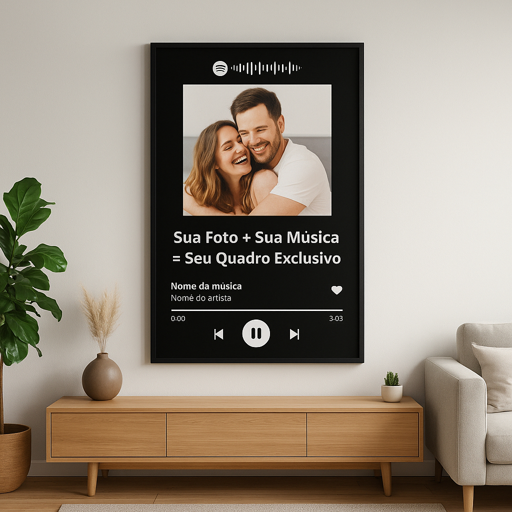 Quadro Spotify Interativo com Moldura Personalizado Com Foto e Música