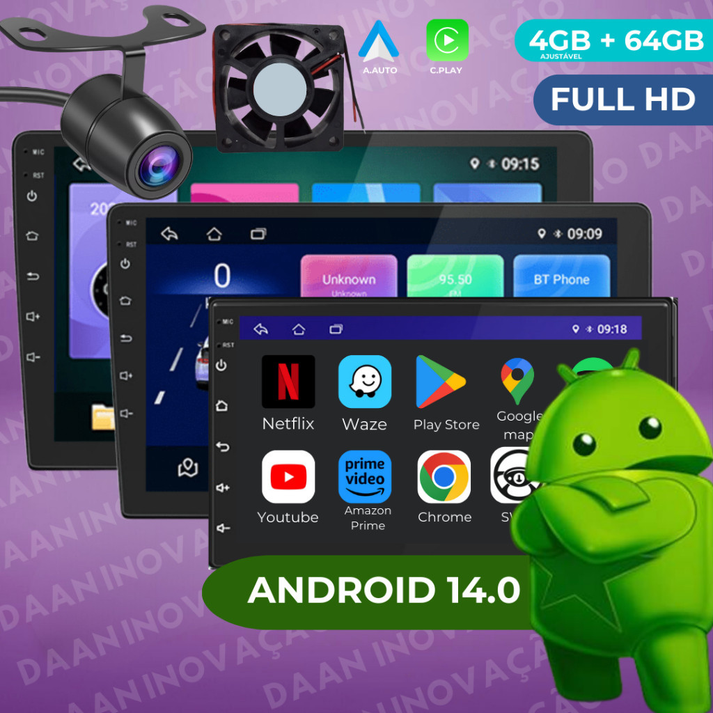 Central Multimidia Android 13 Universal 2din 7 Pol Wifi App Waze Youtube Spotify