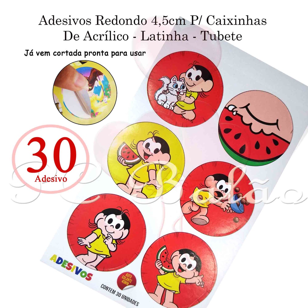 30 Rótulos Adesivos Magali para colocar Tubete, Latinha, Caixa Acrílica 4,5cm Redondo