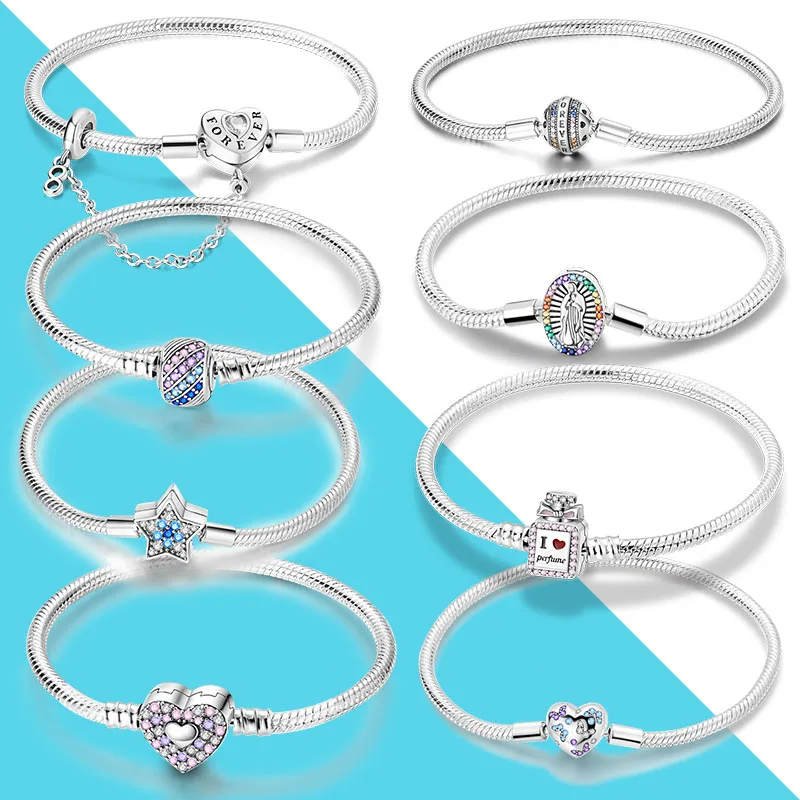 Novo Original 925 Sterling Silver Bracelet Pulseira De Prata Perfume Coração Colorido Zircon Fecho De Cobra Corrente Encantadora De Jóias De Bricolage