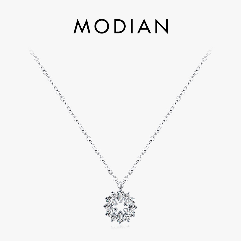 Modian Real 925 Sterling Silver Lucky Snowflake Pendant Colar Para Mulheres Jóias Finas 2021 Novo Bijoux Girl Presentes De Natal