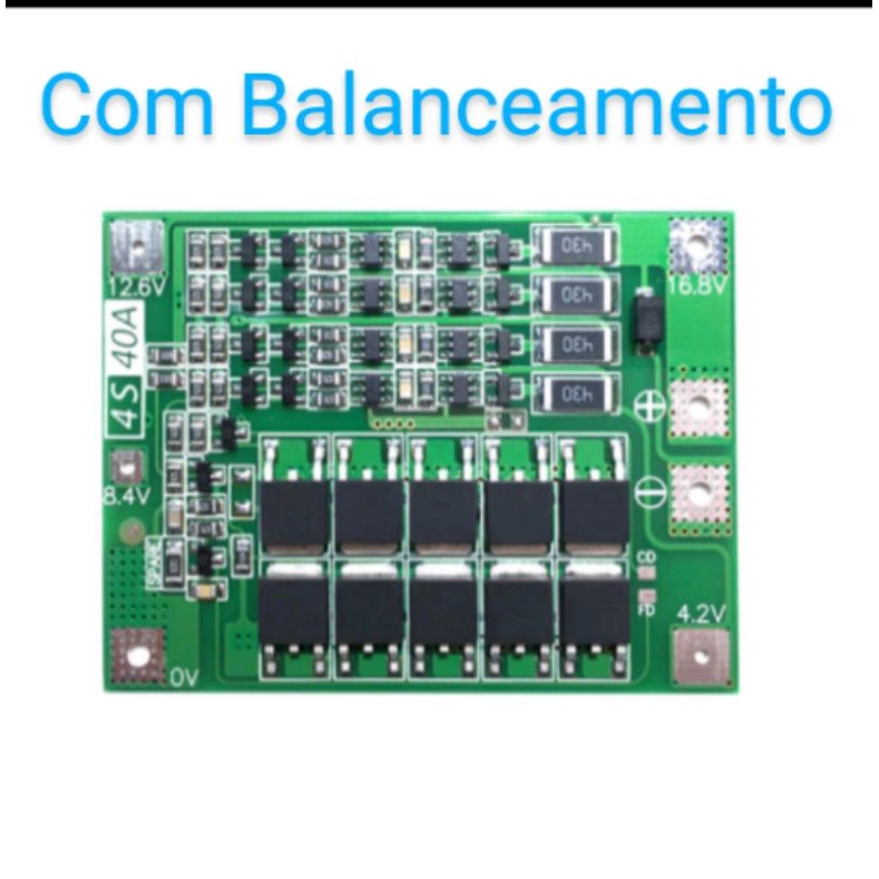 Placa Bms Proteção 4s 40a Balanceamento 14.8V 16.8v Bateria Lítio 18650 Li-ion Lipo Carregador 26650 14500
