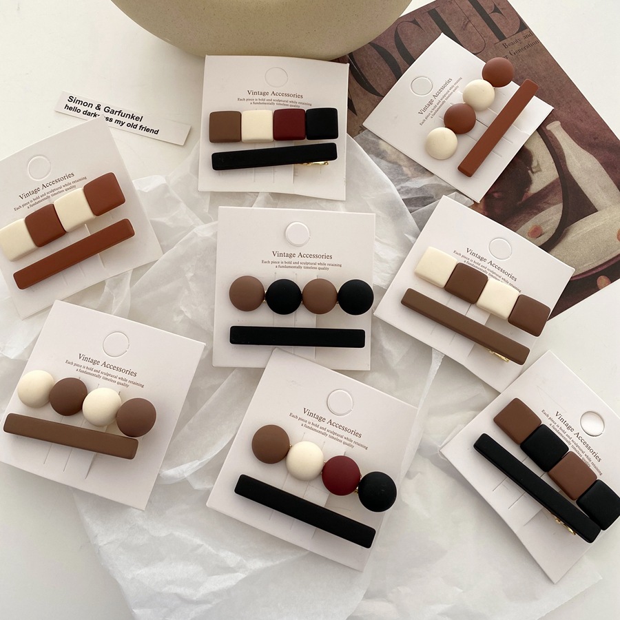 2 Pcs/Set Ins Coreano Cor Do Café Grampo De Cabelo Retro Temperamento Mulher Acessórios