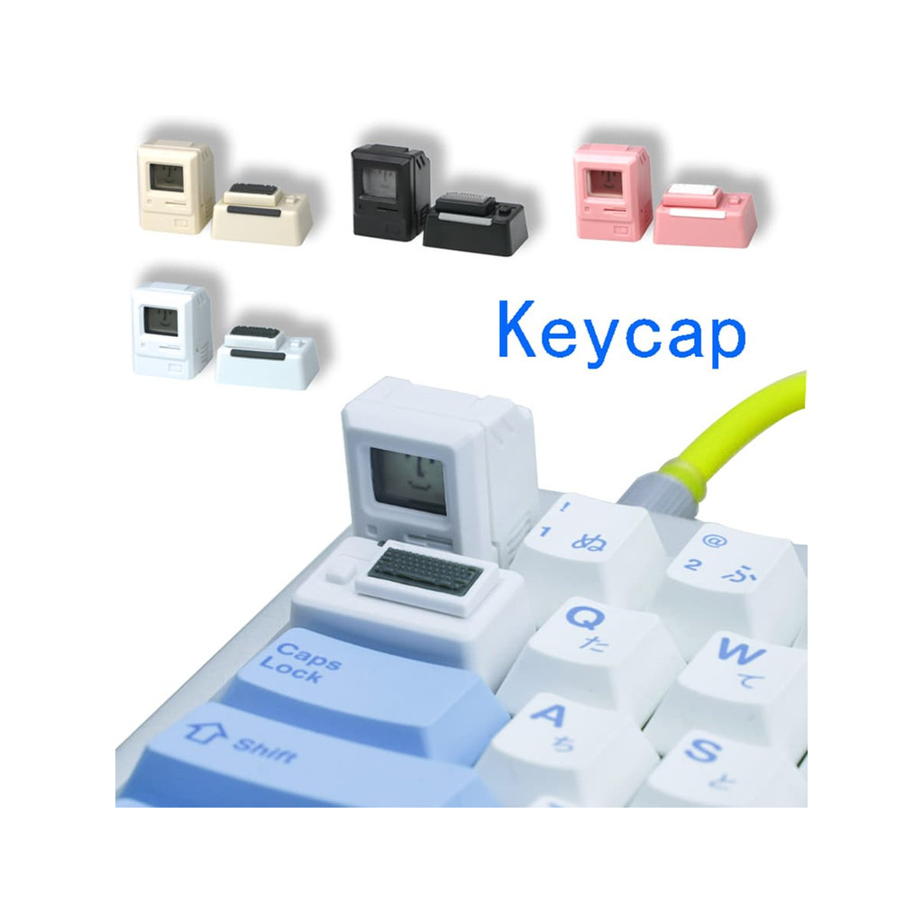 2pcs/set White Abs & Magnetic Material Retro Intosh Design Keycaps , Teclado Iluminado Criativo Substituível Com Estilo Fofo De Rosto , Compatível Teclados Mecânicos De Eixo