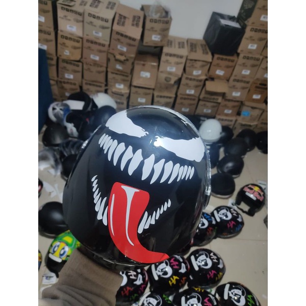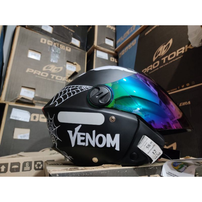 capacete personalizado aberto preto fosco venom com viseira camaleão colorida