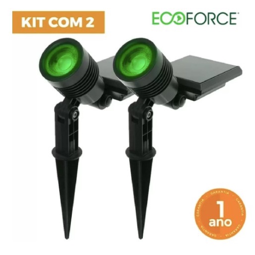 Kit 2 Luminaria Solar Jardim Espeto Spot 10 Lumens Luz Verde