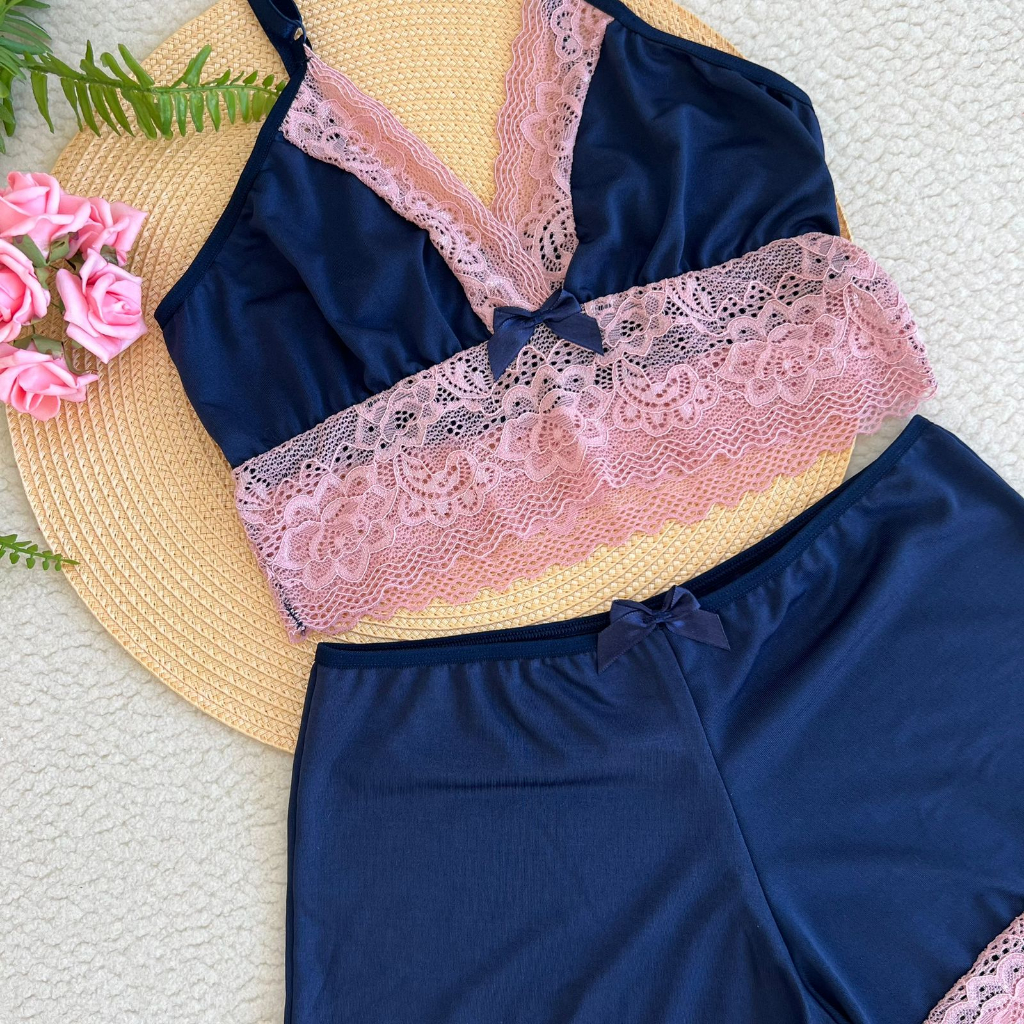 Conjunto Feminino Baby doll Short Doll Cropped Renda Sexy Pijama Com Renda Para Dormir Verão
