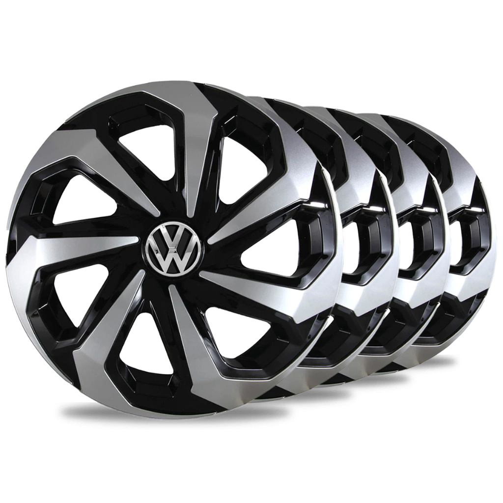 Jogo 4 Calotas Esportiva Spider Aro 13/14/15 Black/Silver Vw Fox Gol Polo Voyage Up Saveiro