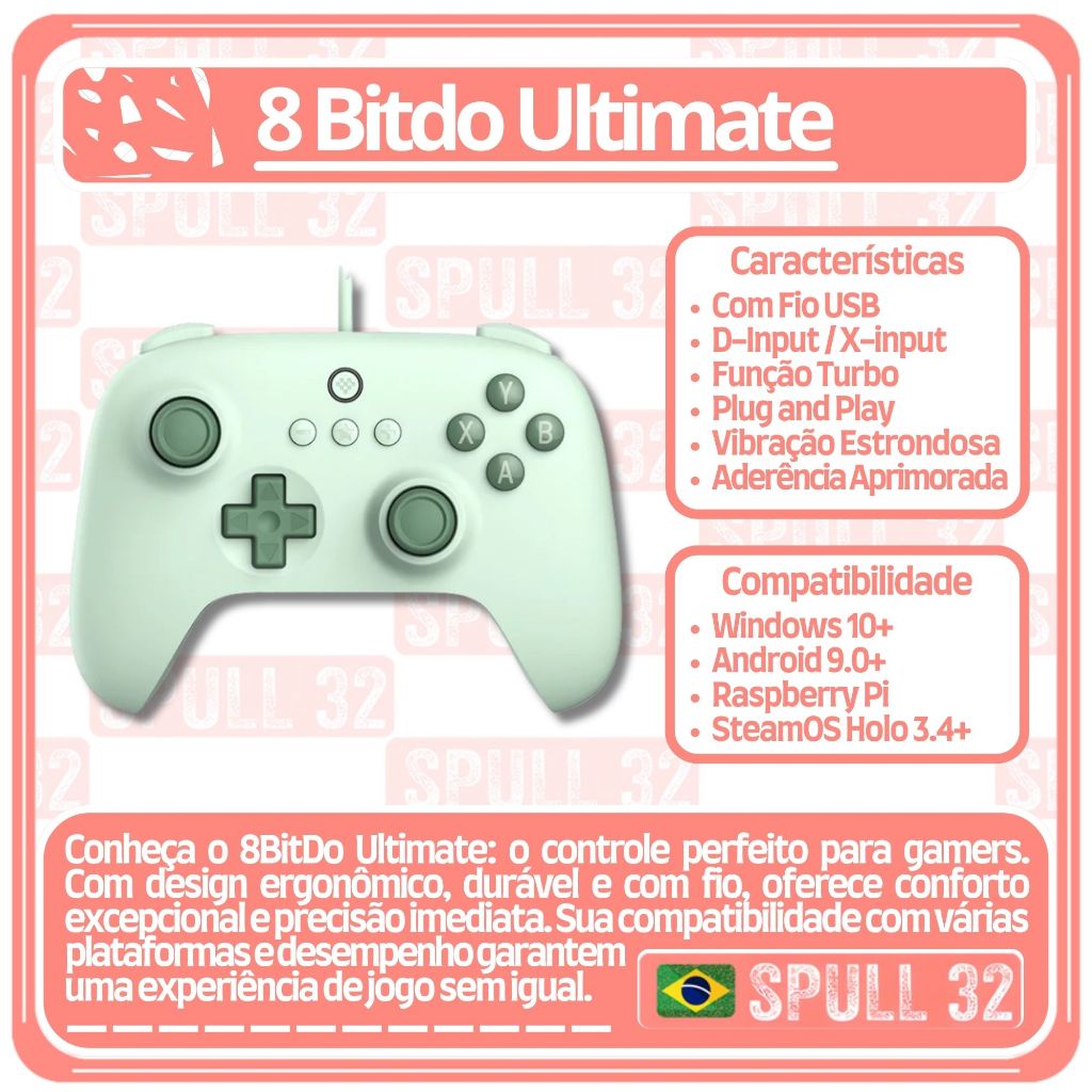 Controle Joystick Gamer 8 BitDo Ultimate C Com Fio USB Verde Para PC | SPULL 32