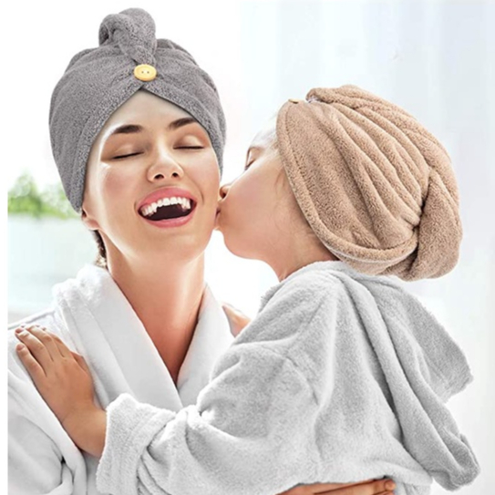 Kit 2 Toalhas Grossa Mágica Para Cabelo Secar Rápido Touca Banho