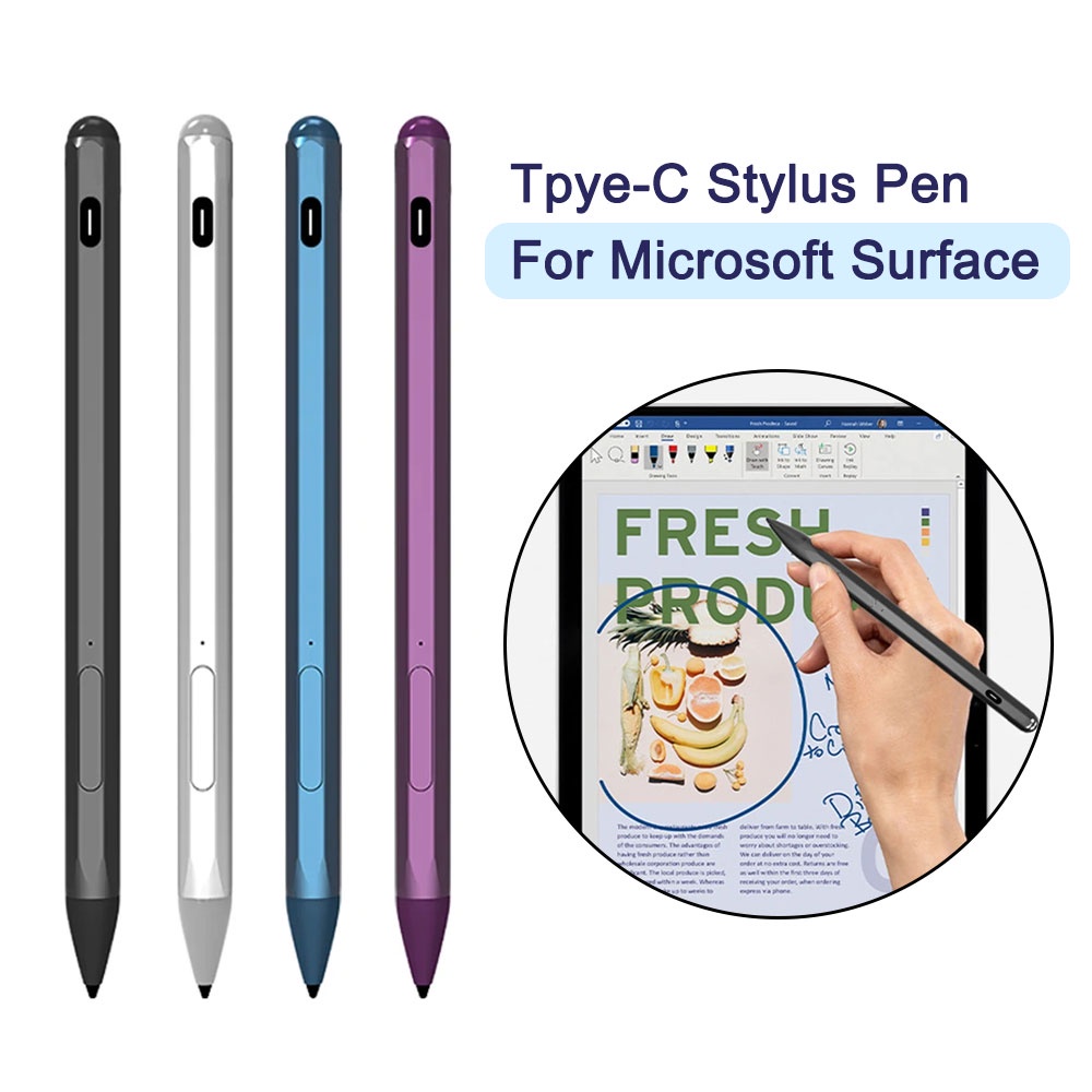 Caneta Stylus Tpye-C Para Microsoft Surface Go Pro 8 7 6 5 4 X Latpop 4096 Níveis Rejeição Da Pressão Palma