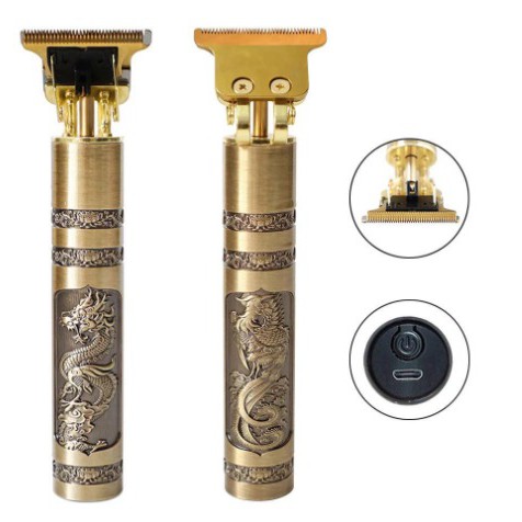 Máquina De Barbear e Cortar Cabelo Recarregável Profissional Dragão Acabamento Masculino T9 Vintage Sem Fio Bateria Duravel Modelo Dourado
