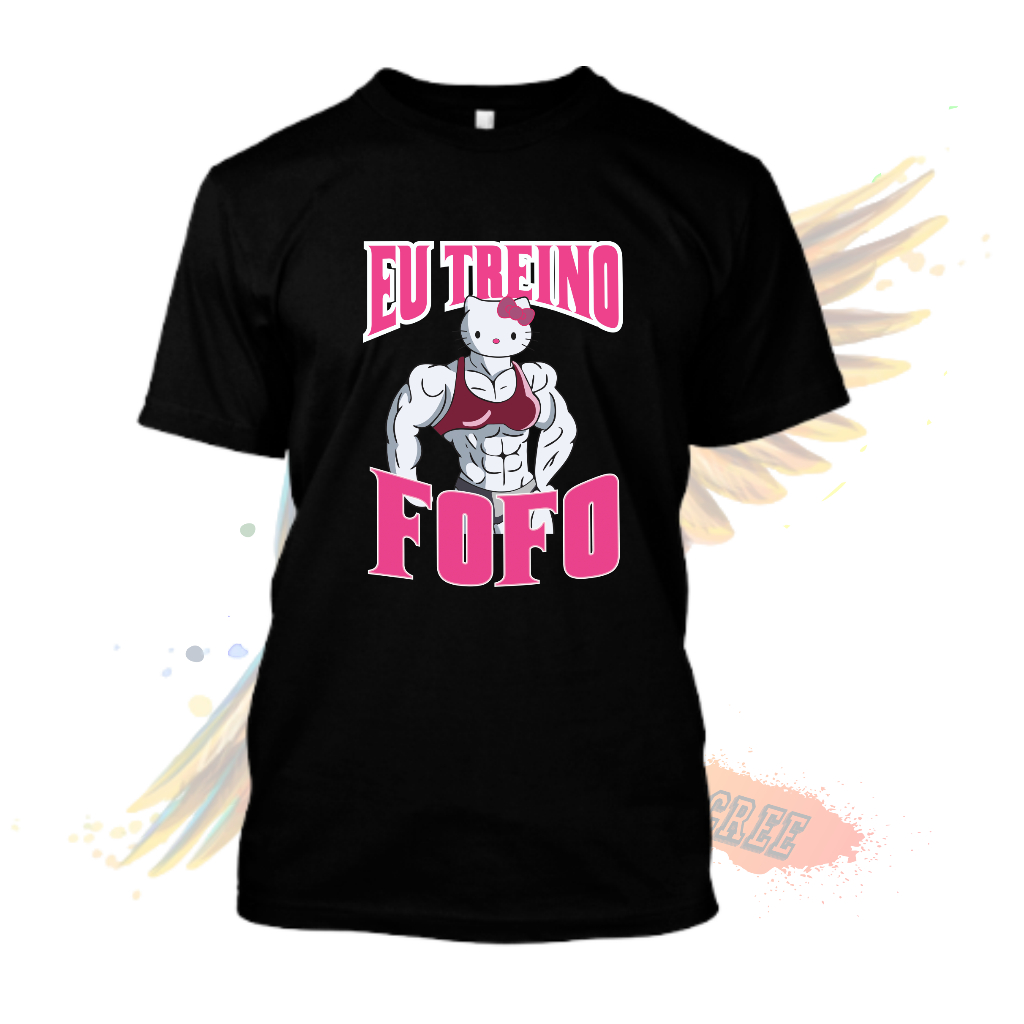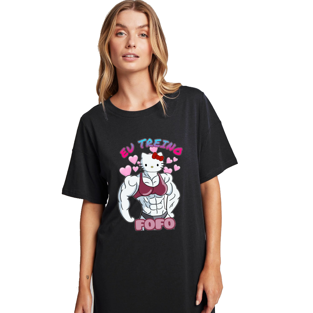 Camiseta Eu Treino Fofo Hello Kitty Unisex 100% Algodão Preto