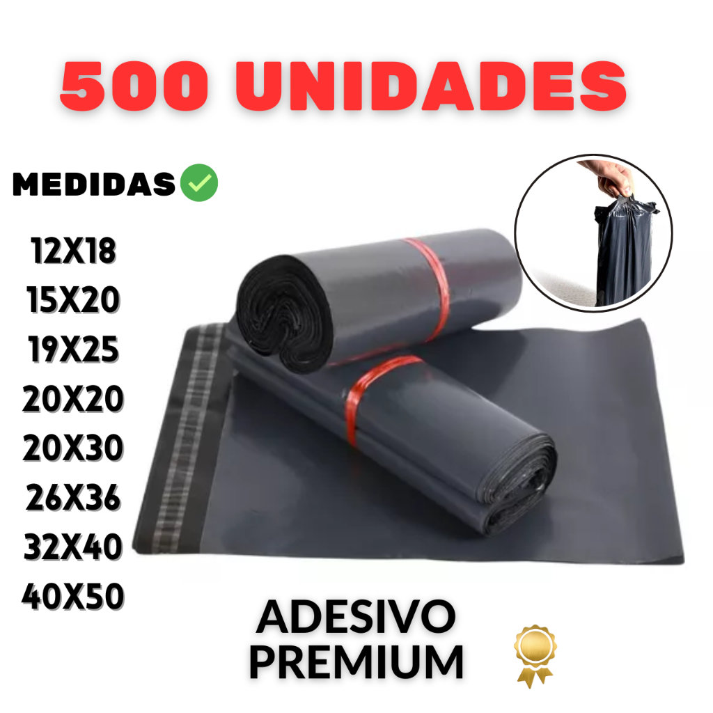 Kit c/ 500 Envelope Segurança Embalagem De Envio Tamanhos 12x18 15x20 15x25 19x25 20x30 32x40 40x50