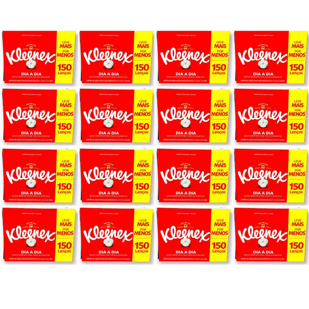 Kit C/16 Caixas De Lenço De Papel Kleenex C/ 150 Lenços Suave