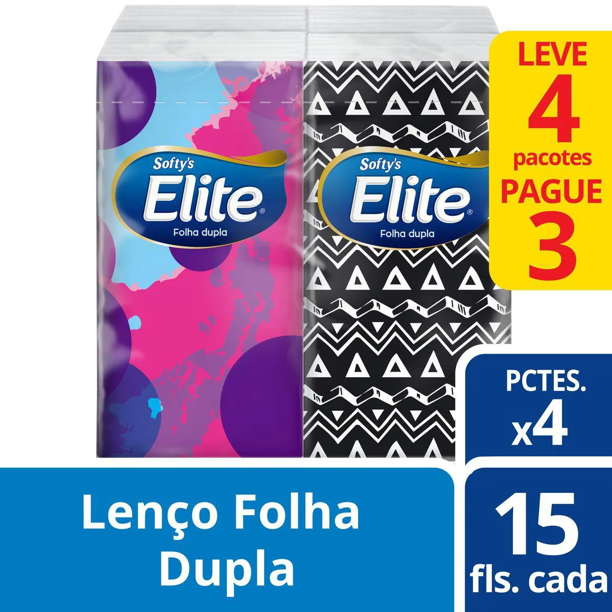 Kit Lenços de Papel de Bolso Elite Softy's com 4 pacotes de 15 folhas cada