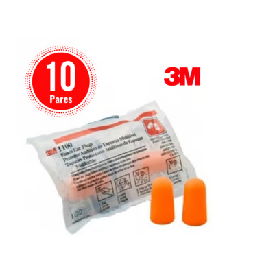 KIT C/10 PARES - Protetor Auditivo Plug Espuma Auricular 1100 3M